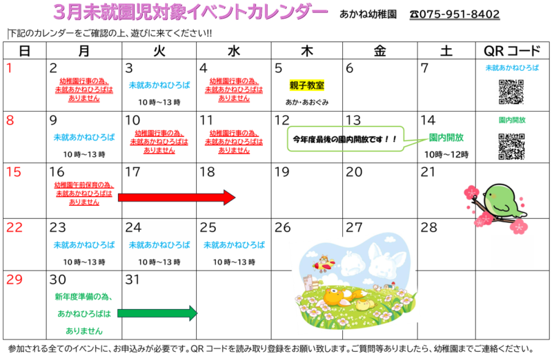 あかね幼稚園では、未就園児さんを対象としたイベントや園内開放を定期的に開催しています【予約制】